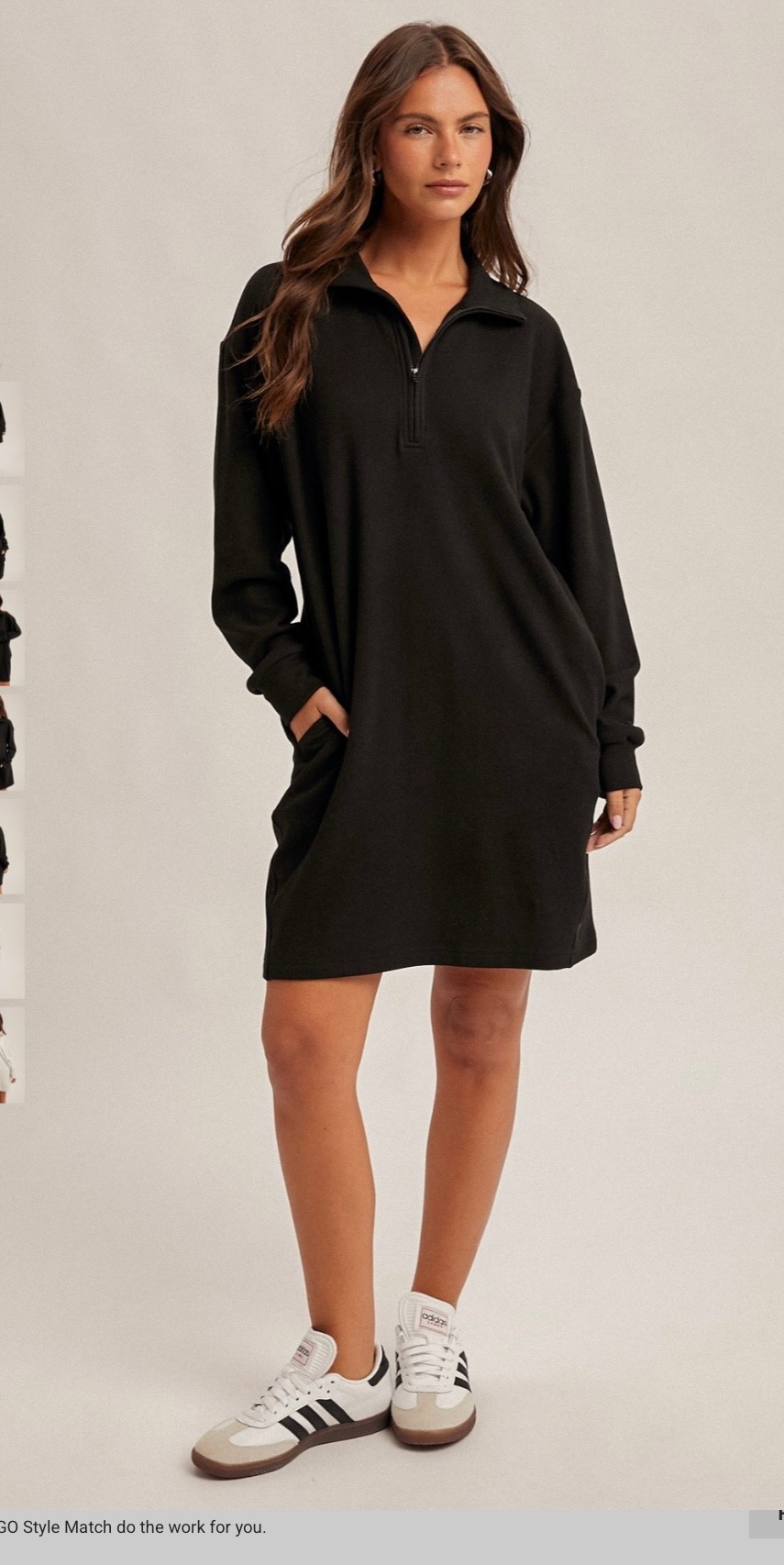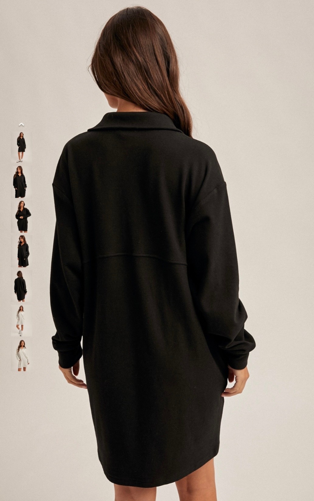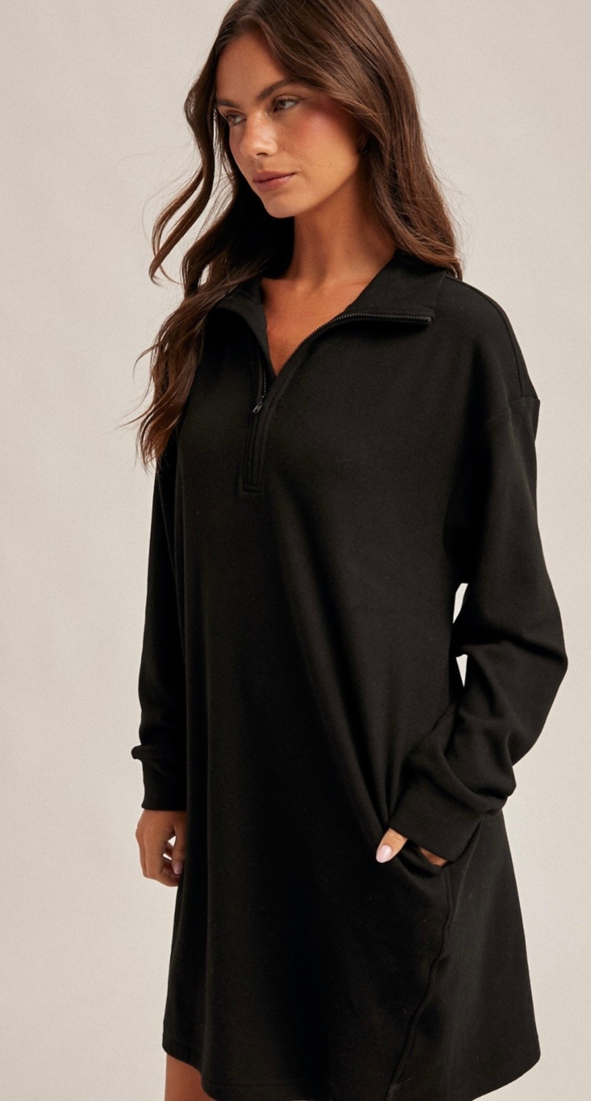 • BRUSHED QUARTER ZIP JERSEY LOUNGE SWEATSHIRT DRESS WITH POCKETS