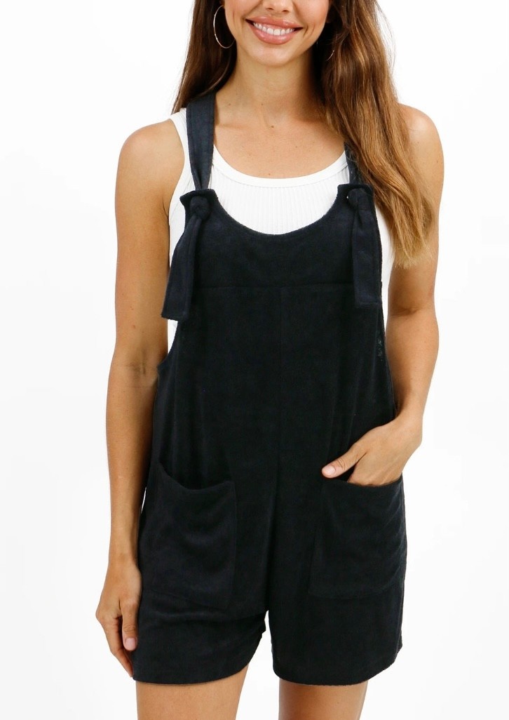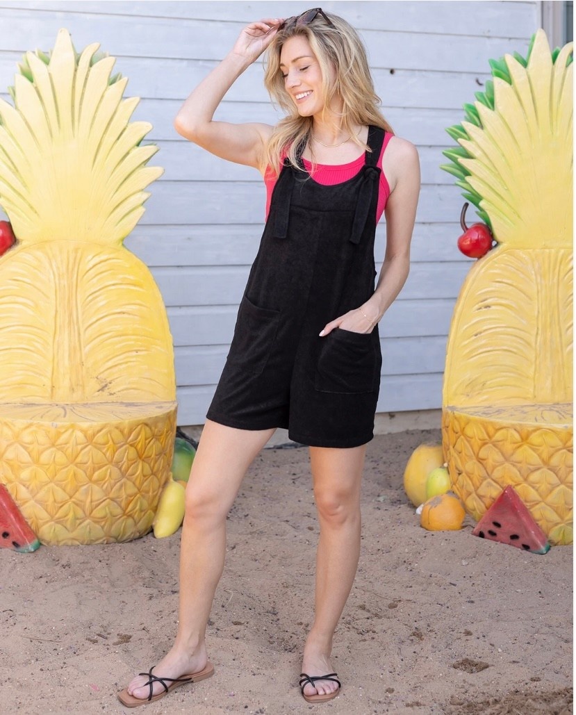 • Made for summertime fun! The new Poolside Terry Cloth Romper makes water days a breeze! Crafted from lightweight, stretchy, French terry, this romper is designed to keep you cool and comfy from poolside lounging to casual errands. With self-adjustable straps, pockets, and an effortless fit, it’s the perfect terry cloth swimsuit cover up to throw on and go. Whether layered over your fave Brami or worn solo, this terry cloth romper is everything your sunny day wardrobe needs.