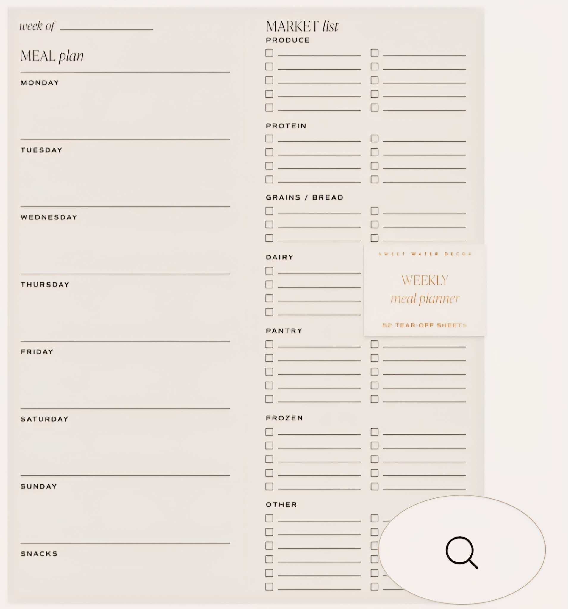 Make meal planning easier with our Weekly Meal Planner Notepad, designed to help you organize meals and grocery lists in one place. Plan your week’s menu, jot down ingredients, and easily tear away the market list for a streamlined shopping experience. This practical and stylish notepad is the perfect addition to any kitchen or home office, keeping you organized and on track for a successful week of meals.
